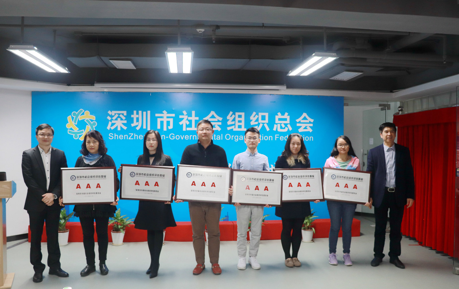 1月26日,深圳市网商协会从深圳市社会组织管理局和深圳市社会组织总会领导手中接过了社会组织等级AAA的牌匾,这标志着协会成立五年之际,朝高标准、严规范的发展目标又迈上新台阶。