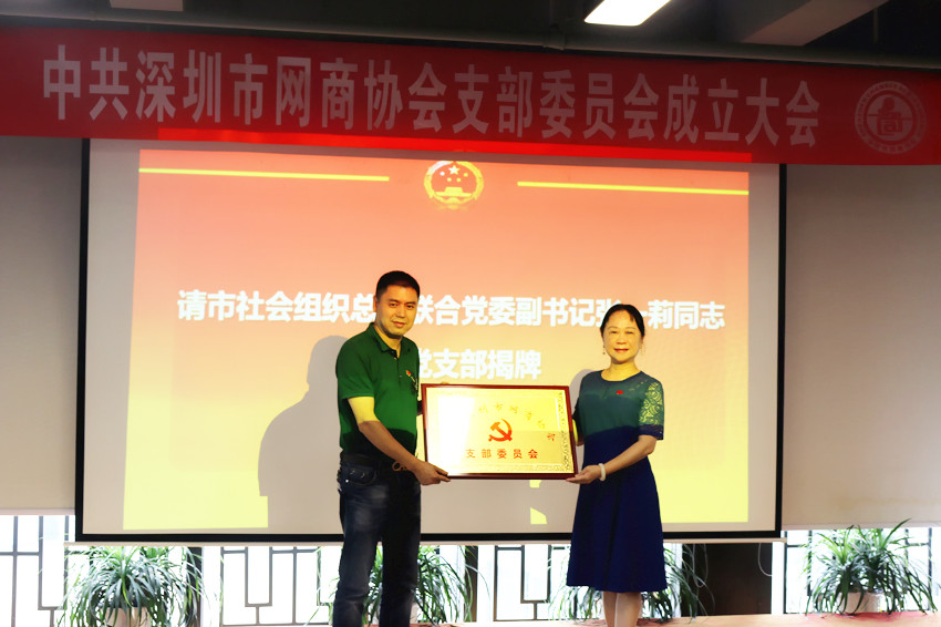 最后由深圳市社会组织总会联合党委副书记张一莉同志为深圳市网商协会党支部正式授牌,并合影留念。