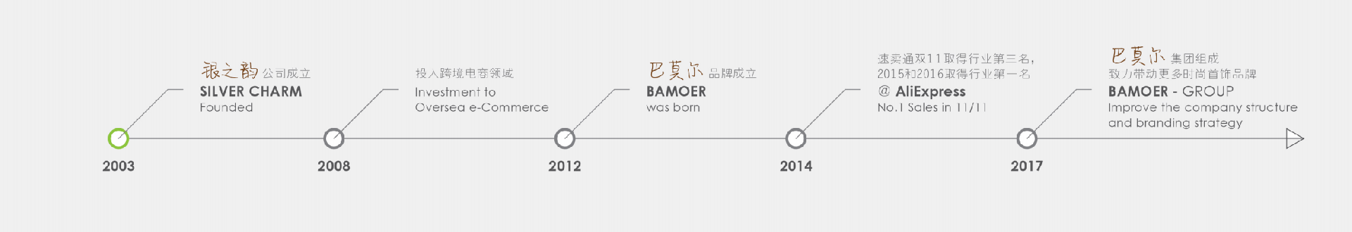 银之韵专注珠宝首饰行业14年,熟悉首饰行业发展和潮流趋势,拥有发展国际品牌的格局,早于2012年立足香港和欧美市场,并创建了时尚潮流品牌巴莫尔BAMOER,经历多年的努力经营,连续产生多个国际知名一线电商平台的「业绩第一」,造就了自建品牌国际化的优质范儿,树立了中国企业家的榜样,成为引领全球行业的佼佼者。YIZIY has focus to contemporary jewelry industry over 14 years, YIZIY understand and grasped the trend of the jewelry industry with the international brand pattern. As early as 2012, YIZIY has created their own jewellery brand BAMOER and also set up the oversea company based in Hong Kong, Europe and North American doing world wide e-commerce business.